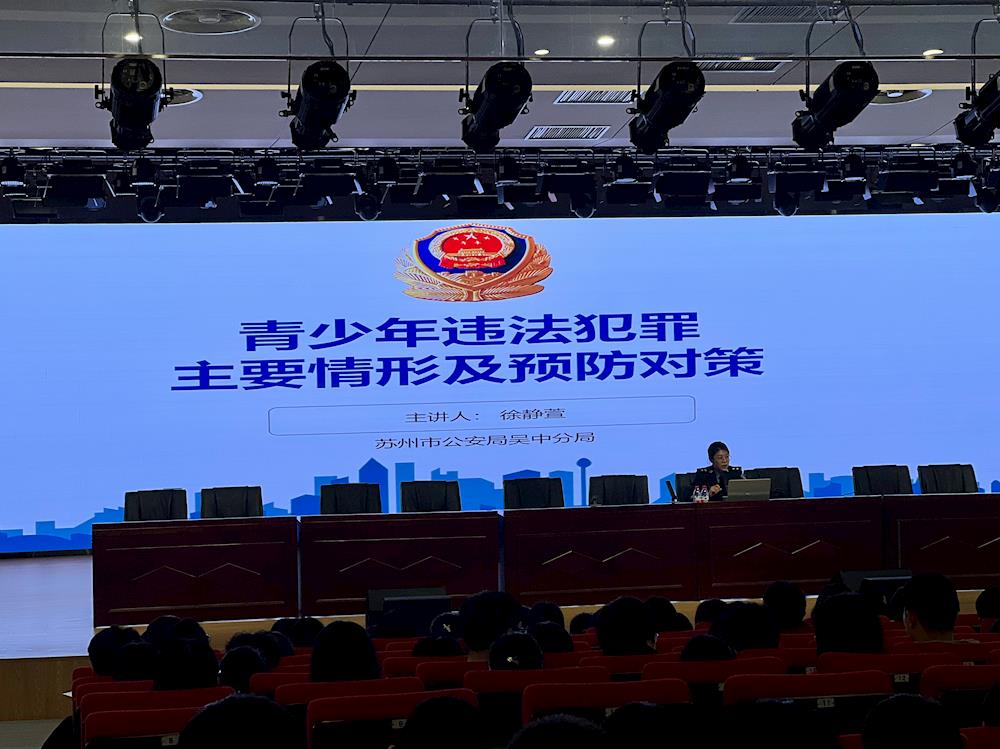 随着社会的飞速发展,铺天盖地的网络信息暗流涌动,如何保护青少年不受歪风诱惑,成为了高中阶段教育中的必修课。5月8日下午,我校邀请苏州市公安局吴中分局徐静萱警官,面向高二年级师生,开展了题为《青少年违法犯罪主要情形及预防对策》的法治专题讲座。整场讲座主要分为四个部分内容:违法犯罪的基本概念、青少年违法犯罪现状、常见的青少年违法犯罪以及遏制青少年违法犯罪的对策。