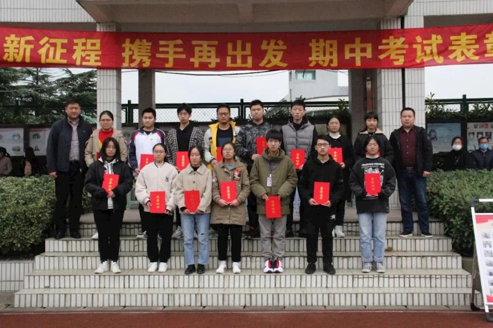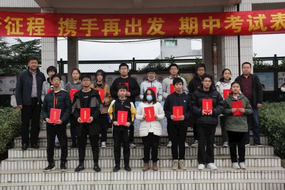 副校长陈丽金代表学校,宣读了学校对期中考试中取得优异成绩学生的表彰决定。对三个年级年级总分前15名的同学予以表彰。表彰名单如下: