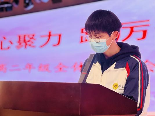 王征宇老师作为班主任代表进行发言。他号召同学们珍惜时间,奋勇拼搏,为梦想而努力。青年的生活,不应只是“蓦然回首,灯火阑珊”的恬然自安,而应该是“千淘万漉,吹尽黄沙”的不倦拼搏。