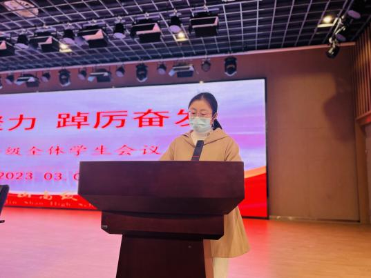 3月7日上午,金山高级中学高二年级全体学生会议在报告厅召开。陈丽金副校长、高二年级部领导、全体班主任、部分任课老师和高二年级全体学生参与会议。