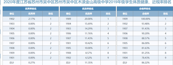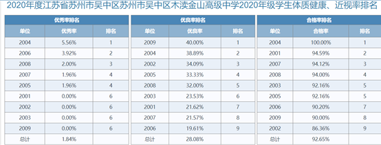2020年度苏州市吴中区木渎金山高级中学学生体质健康公示