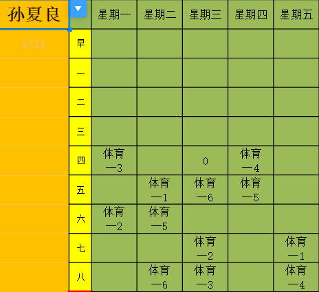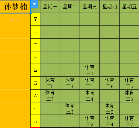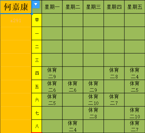 2022-2023学年度第一学期体育课表