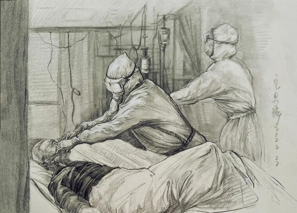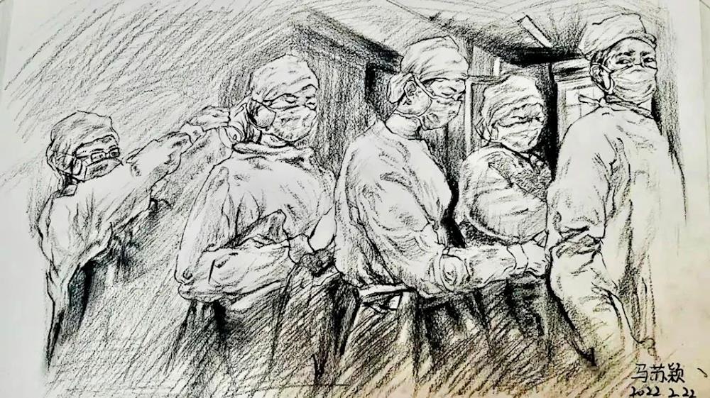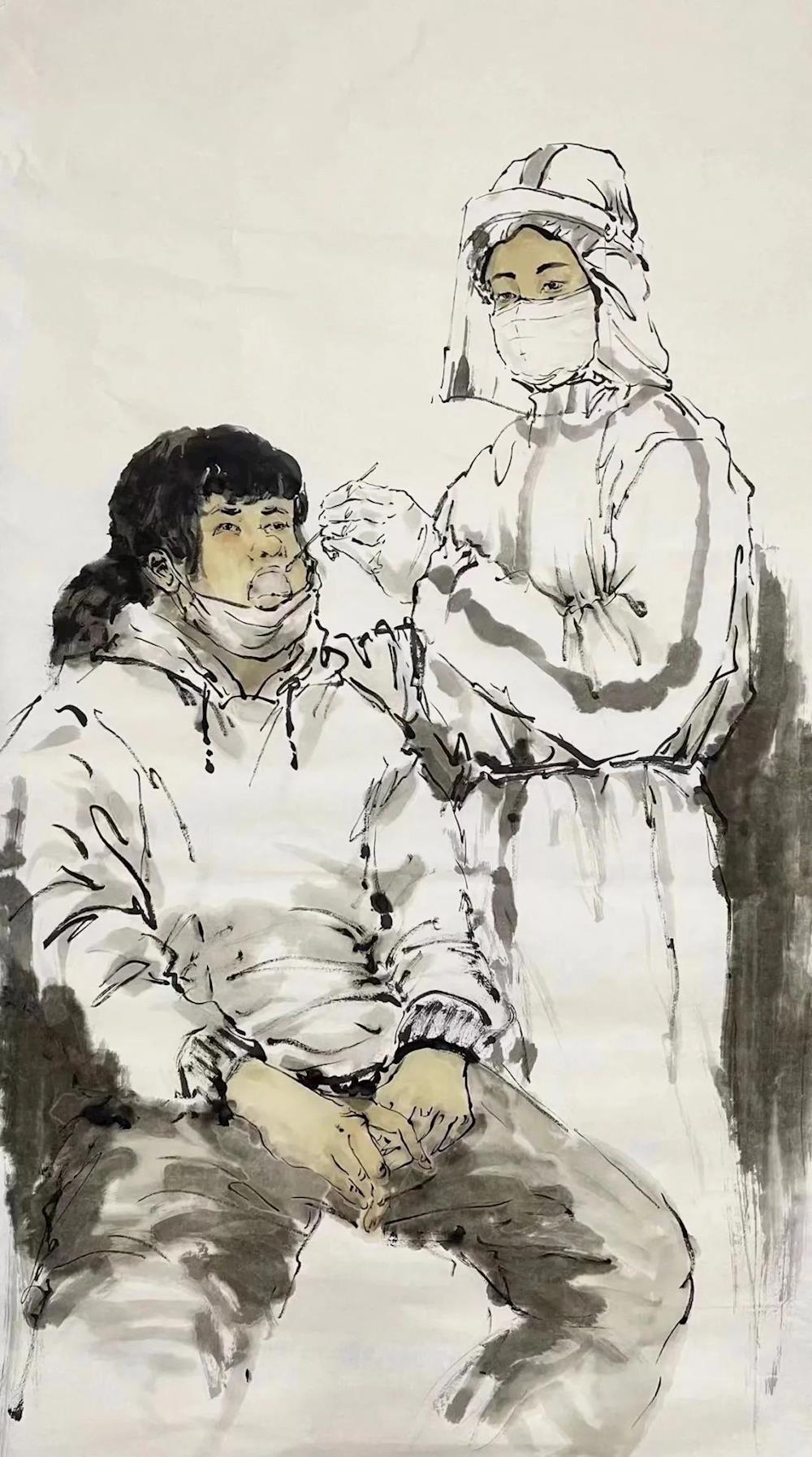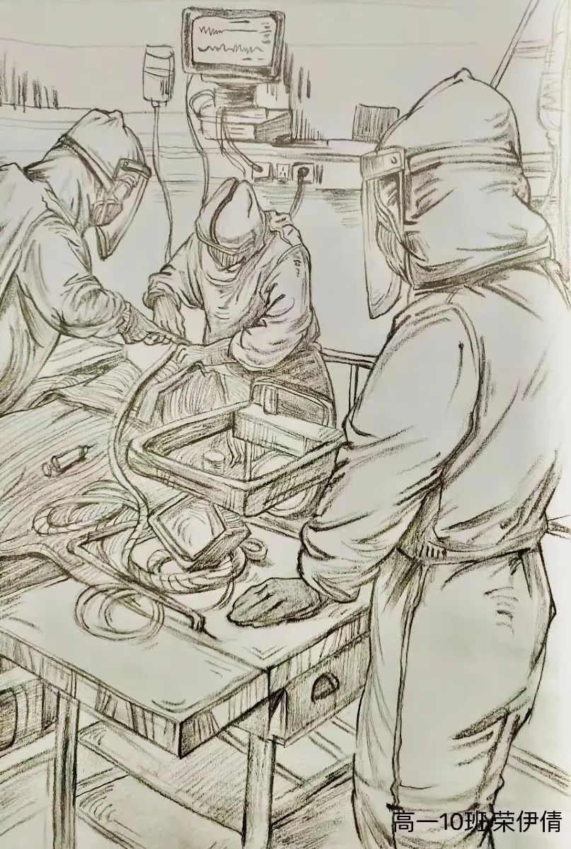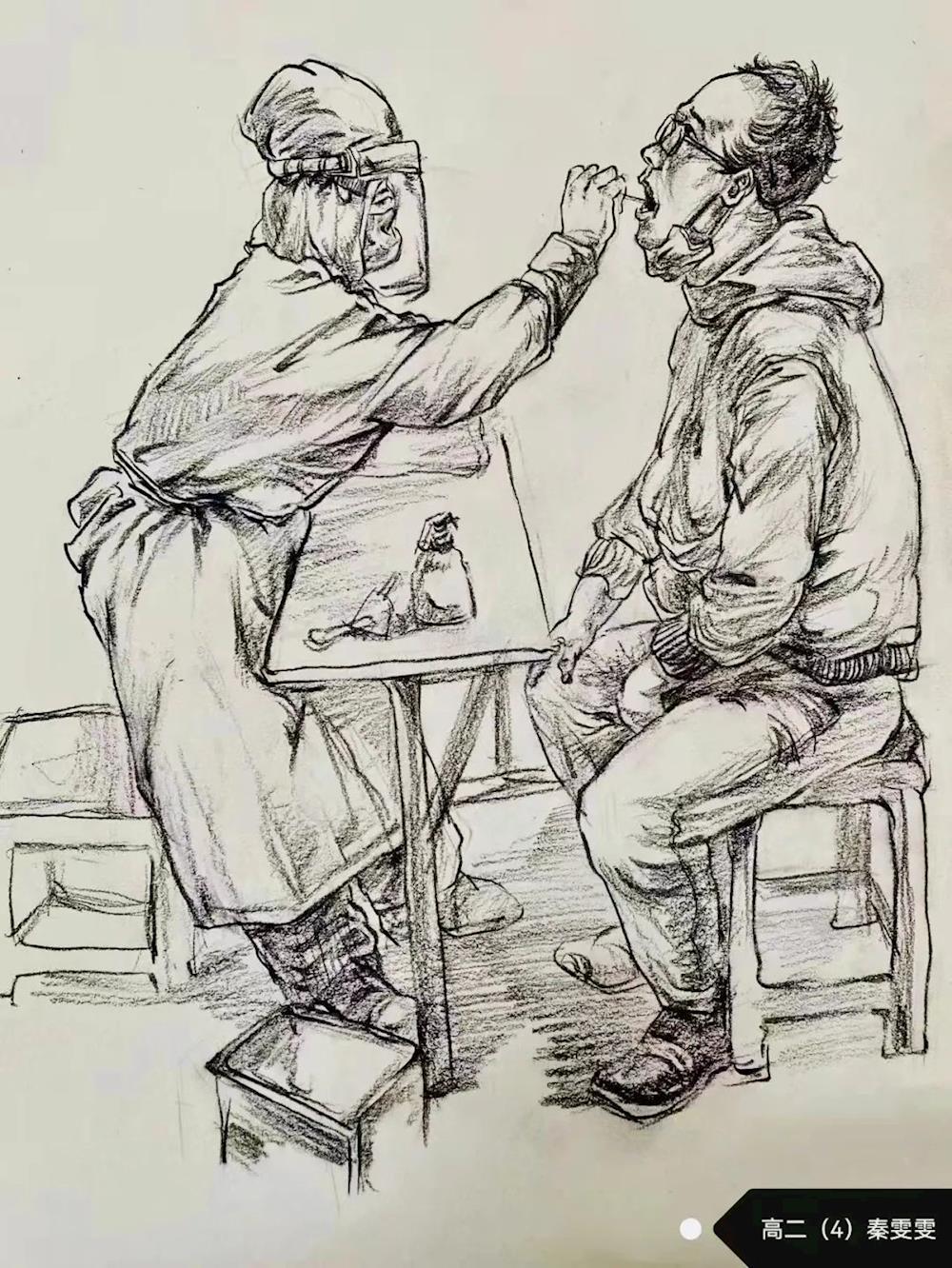 《战疫》(高二4班 徐昕诘) 《核酸检测》(高二4班 秦雯雯)