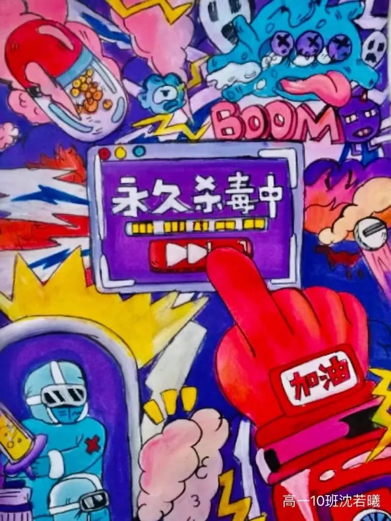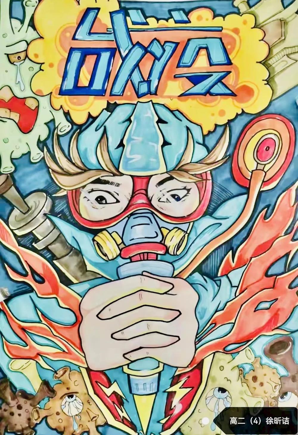 《抗疫有“我”》(高一(10)班 游雅筑) 《永久杀毒中》(高一10班 沈若曦)