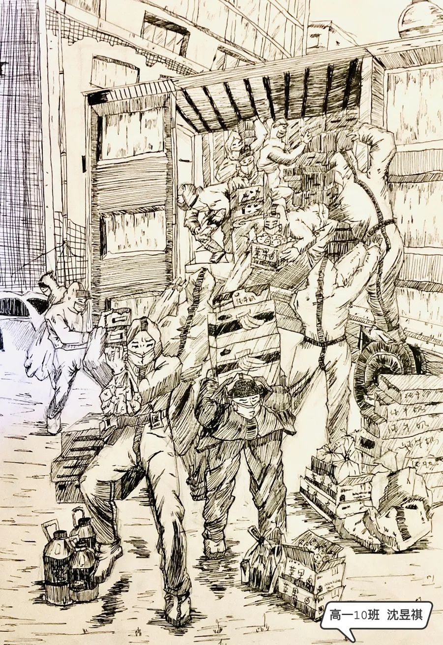 《隔离不隔爱》(高二4班 胡悦) 《岂曰无衣,与子同袍》(高二4班 马苏颖)