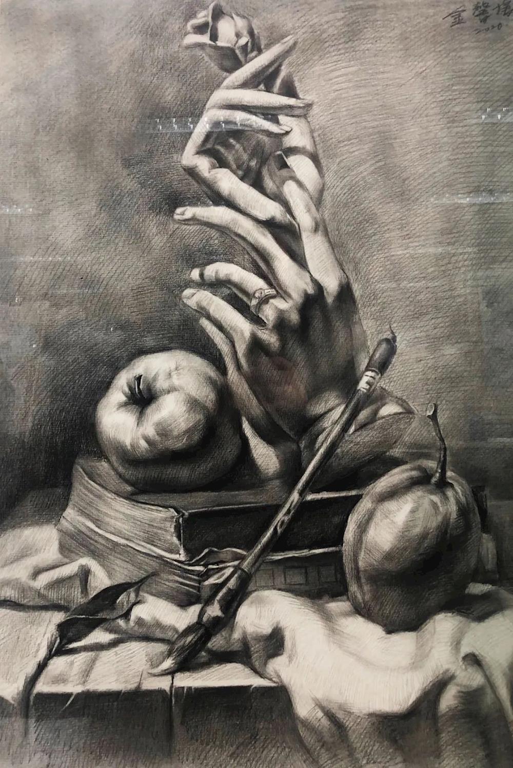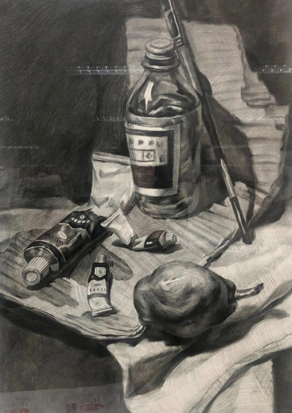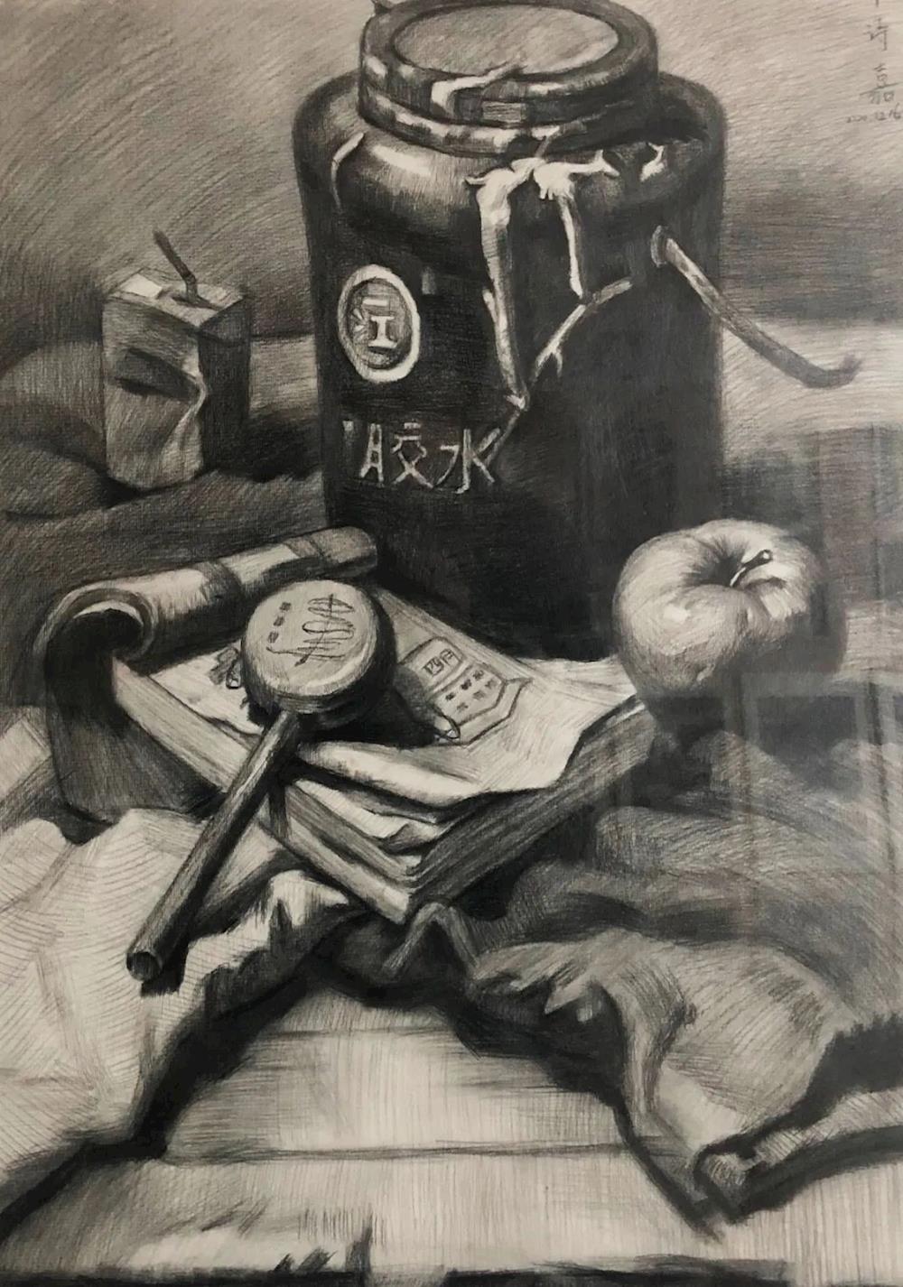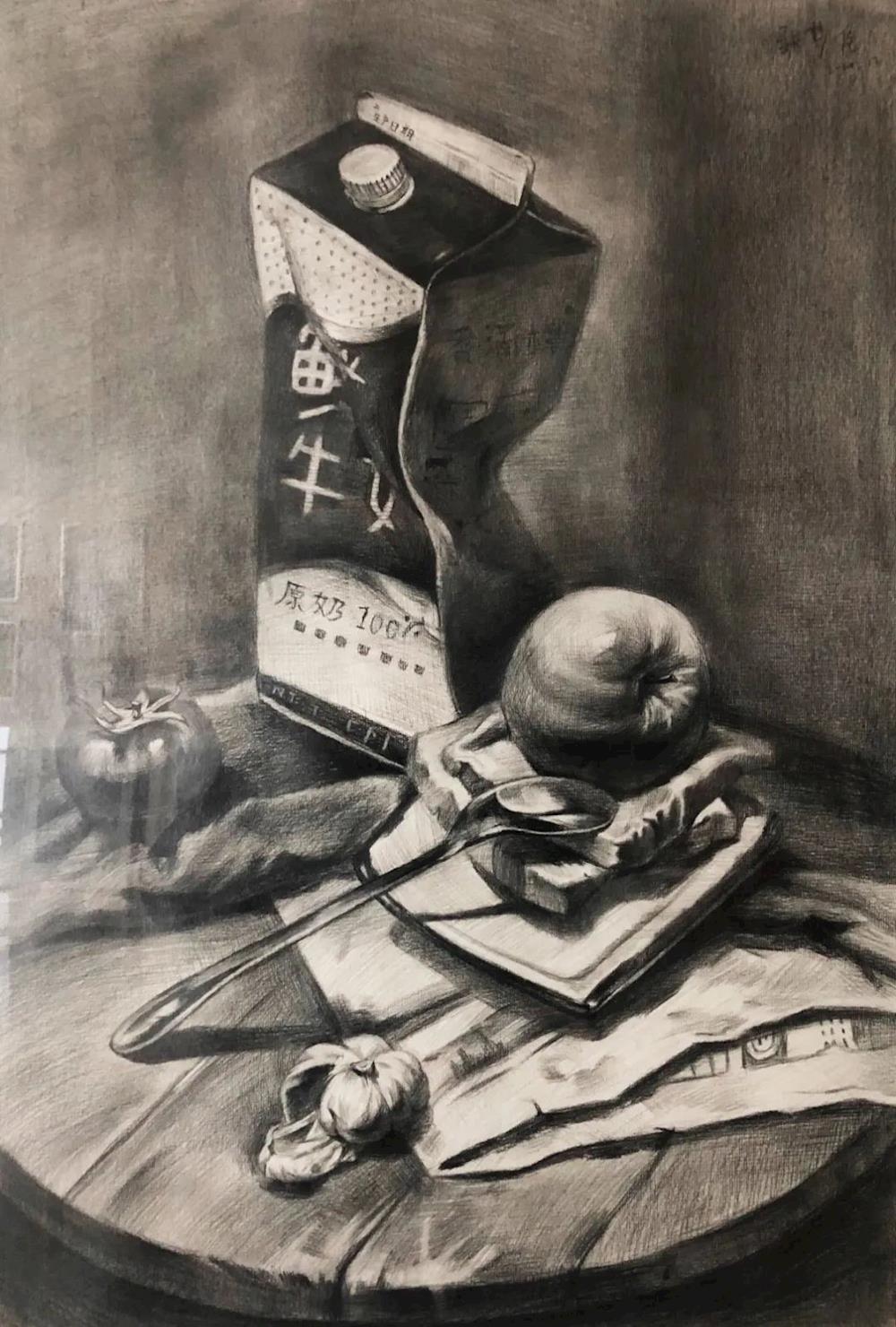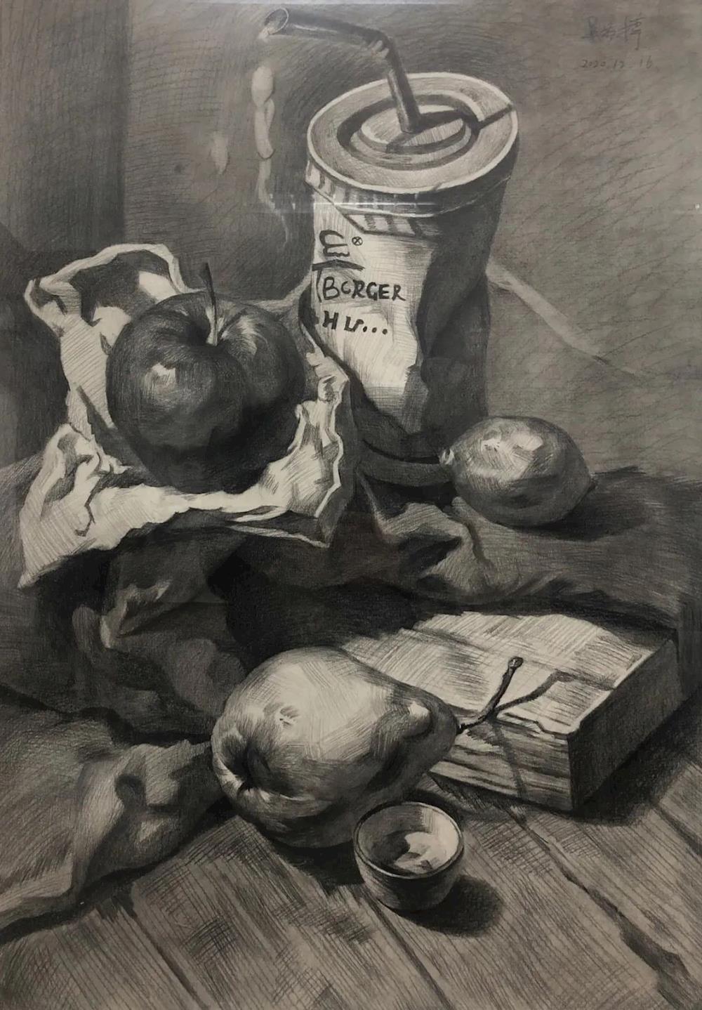 对于陌生的铅笔、画架、纸张,我是茫然无措的,也是兴奋难耐的。我清楚自己对画画的兴趣程度,称得上热爱。但因从没有学过素描,我很害怕自己会格格不入。还好最害怕的事情并没有发生。老师的尽责教导,牵引着我走向真正的“美术世界”。美术其实是很难通过老师的讲解去把它做好,老师似是明白这点,大部分时间都是由我们自己去钻研、琢磨。我只是在每一次画画的过程中总结经验,就有了肉眼可见的进步。