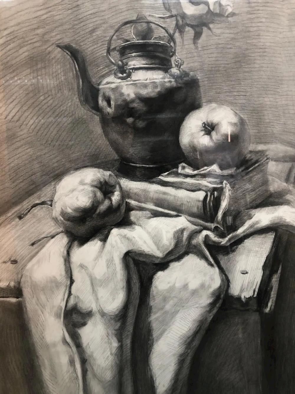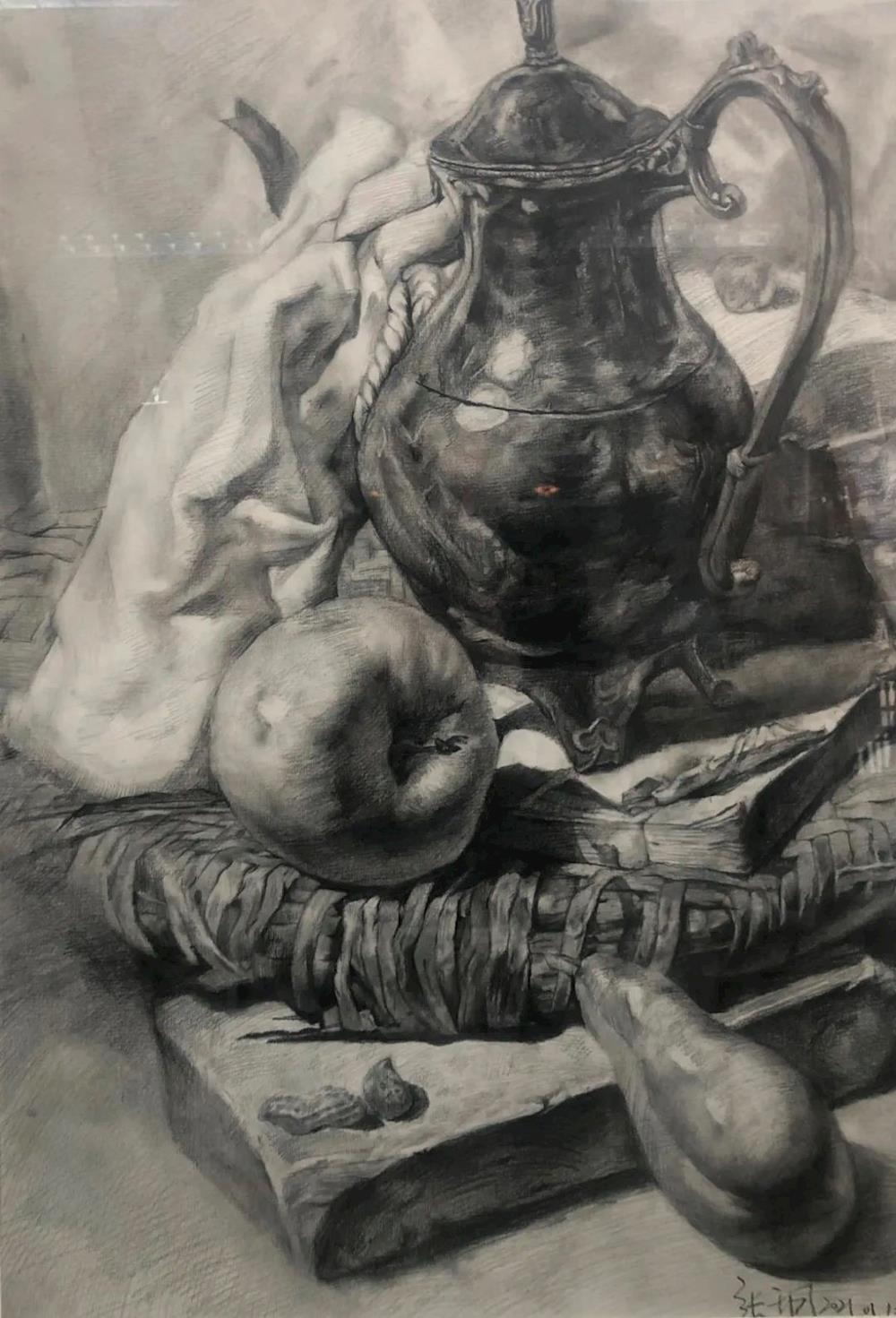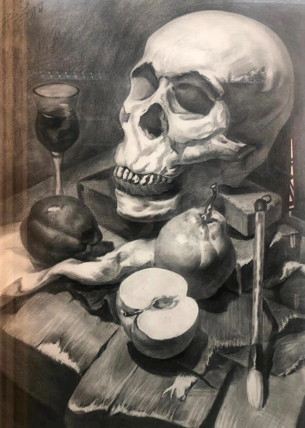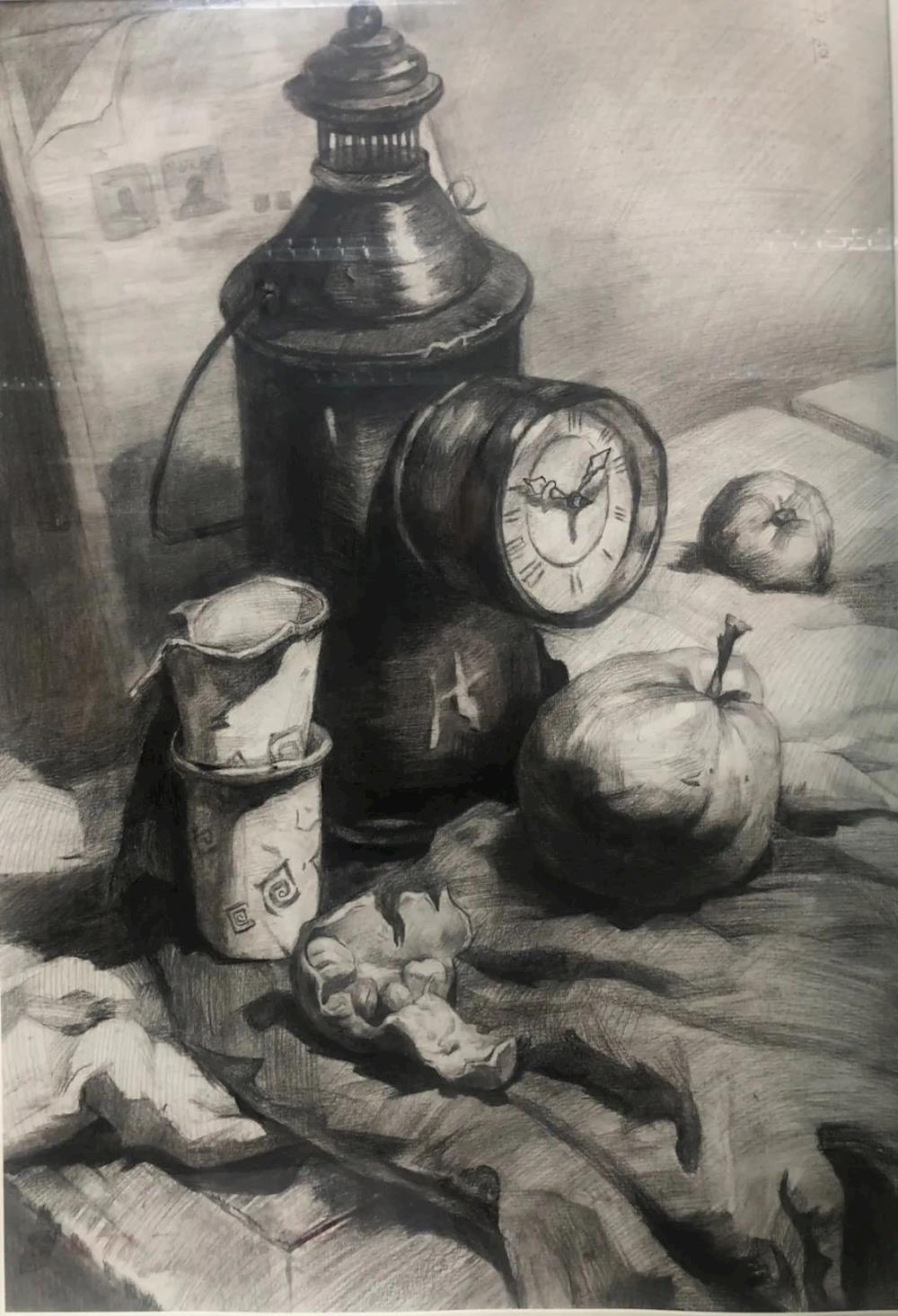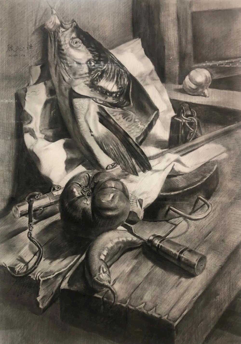 对于陌生的铅笔、画架、纸张,我是茫然无措的,也是兴奋难耐的。我清楚自己对画画的兴趣程度,称得上热爱。但因从没有学过素描,我很害怕自己会格格不入。还好最害怕的事情并没有发生。老师的尽责教导,牵引着我走向真正的“美术世界”。美术其实是很难通过老师的讲解去把它做好,老师似是明白这点,大部分时间都是由我们自己去钻研、琢磨。我只是在每一次画画的过程中总结经验,就有了肉眼可见的进步。