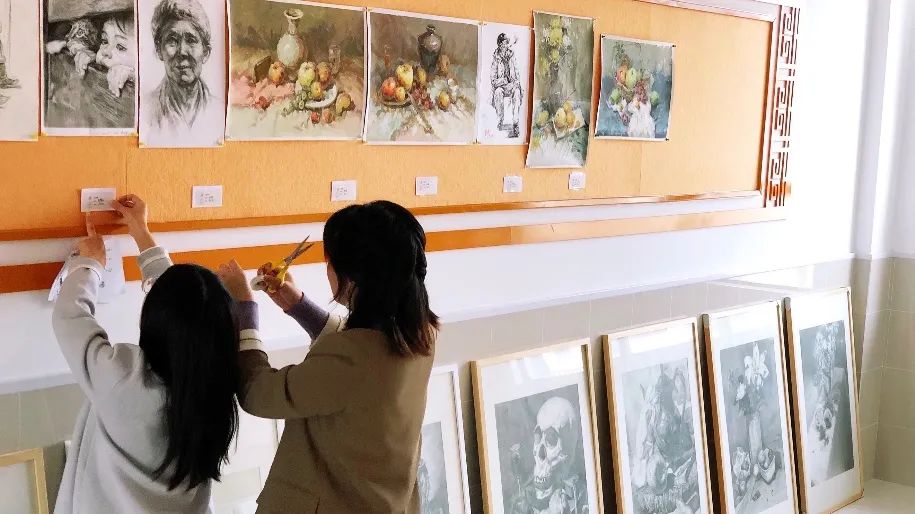 此次艺术节活动的入选作品风格多样,笔墨、色彩、技法富有探索性,许多作品取材于现实生活,接地气、正能量,更好展现了金山学子的艺术风采。活动结束后,老师们收集部分获奖佳作与美术班优秀习作,集中陈列在艺术楼的作品展示空间处。