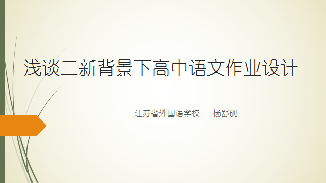 会议第二阶段,由江苏省木渎高级中学沈一老师和江苏省外国语学校杨舒砚老师分别进行了《思辨性阅读与表达初探》、《浅谈三新背景下高中语文作业设计》微讲座。