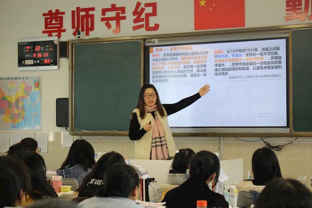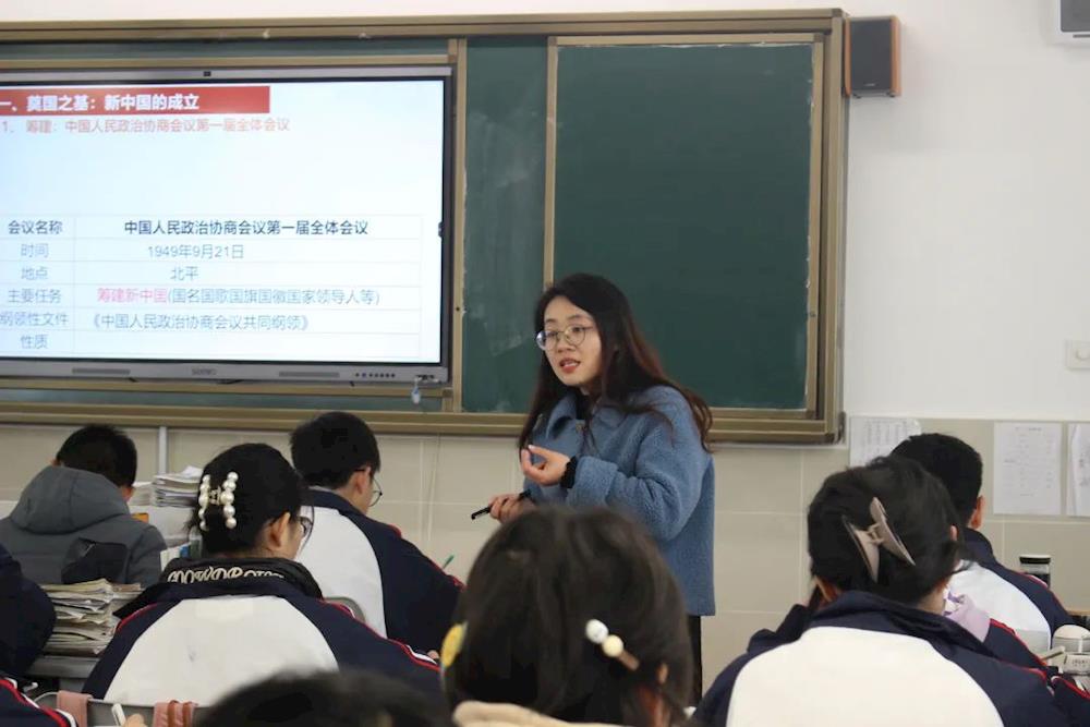 沈华老师开设了高一新授课《中华人民共和国成立和向社会主义的过渡》。沈老师的课堂教学立足于初高中的知识衔接,在弱化基础知识的同时,通过视频、探究、小组合作的方式既激发了学生的学习积极性,又突破了重难点。整节课紧紧围绕课标要求展开,从各个方面落实了历史学科素养。