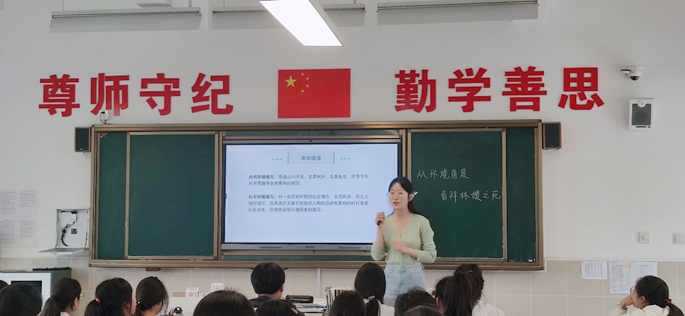 活动第一阶段,我校卢文丽老师和旅职校刘墨涵老师以《祝福》为课题进行同题异构,开设公开课。卢文丽老师从文本的环境描写分析这一角度切入,通过三个任务驱动同学们对小说中环境要素进行归纳分析,运用微写作的方式引导学生理解掌握小说环境描写的作用。