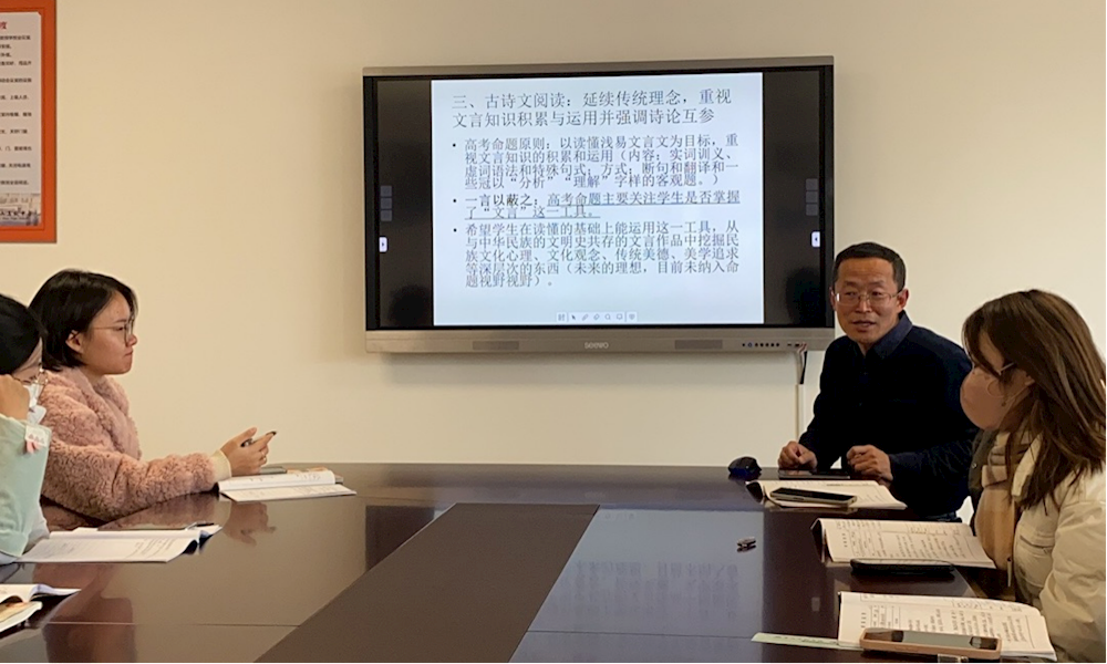 时序更替,携手前行。为充分发挥名师工作室的引领凝聚作用,2023年12月25日,在我校名师岳钦老师的召集下,金山高级中学语文名师工作室全体教师齐聚一堂,围绕青年教师的成长进行交流、研讨。