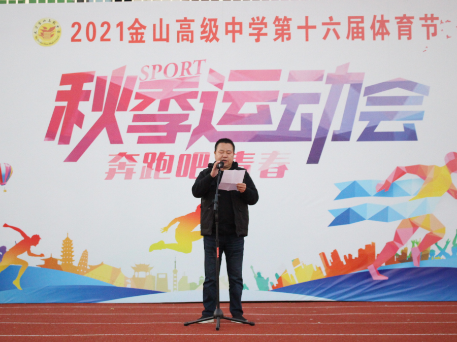 入场仪式结束后,运动员代表、裁判员代表分别进行宣誓,於学林校长致了开幕词,於校长指出搬入新校区对于金山高中而言是一个崭新的起点,如今,金山高中全体师生正站在这一重要的历史结点上,应当把握这一伟大机遇,使金山高中获得一次跨越性发展。全体师生应牢记“以美启智、以美益德,以美冶情”的校训,以更优异的成绩回报人民对我校的信任与厚爱。