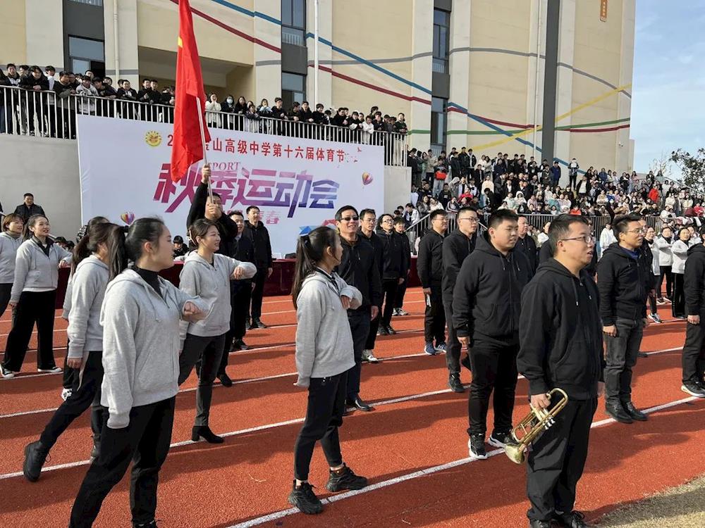 党支部书记、校长於学林,副校长陈丽金携学校全体中层领导干部和所有年级部主任出席运动会开幕仪式。