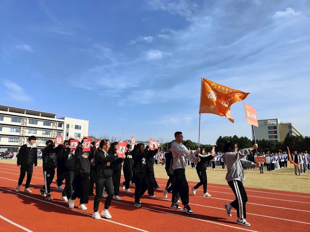 来自三个年级的24个班级方阵相继入场,依次通过主席台。不一样的个性口号,同样的精心编排,青春洋溢,活力四射,充分展现了金高学子意气风发、积极向上的精神面貌。