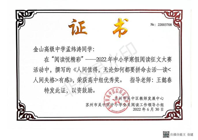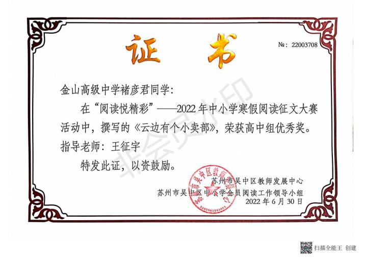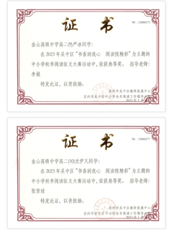近日,在吴中区第三届中小学全员阅读工作颁奖大会上,我校受到组委会表彰,被授予“吴中区中小学全员阅读工作高中组优胜奖”。成绩的取得令人欣喜,鼓舞我们齐心协力共同打造更有内涵的“书香校园”而继续奋斗。