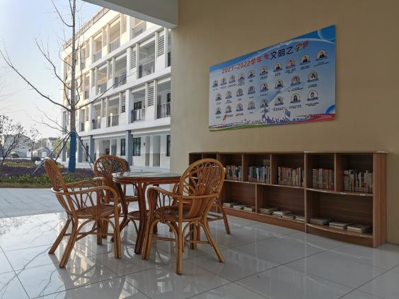 每班设有书柜,定期更换图书。为方便学生阅读,我们在每幢教学楼走廊上为学生设有流动图书阅览角,环境优美、舒适。走廊有古代名人名言名篇的碑刻,便于师生随时阅读。