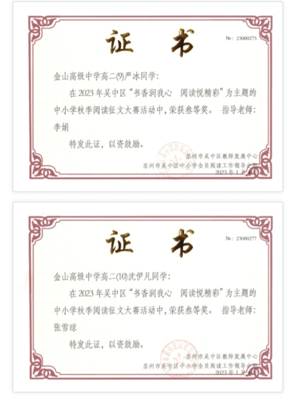 | 吴中区中小学阅读征文成果 | |||