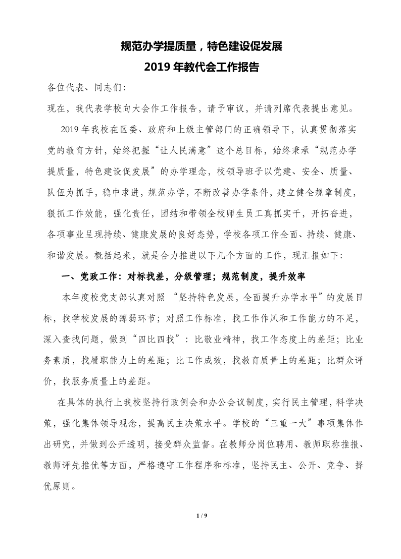 规范办学提质量,特色建设促发展——2019年学校工作总结