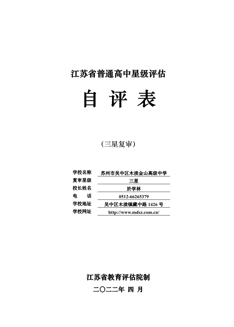 苏州市吴中区木渎金山高级中学三星复审自评表