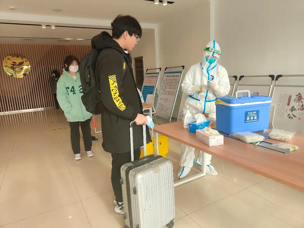 学校实施复课复学师生的每日核酸采集检测,确保早发现,早处置。木渎金山高级中学复课复学相关师生每日到校的第一件事便是前往核酸采集点进行登记检测,随后才开始一天的工作与学习。