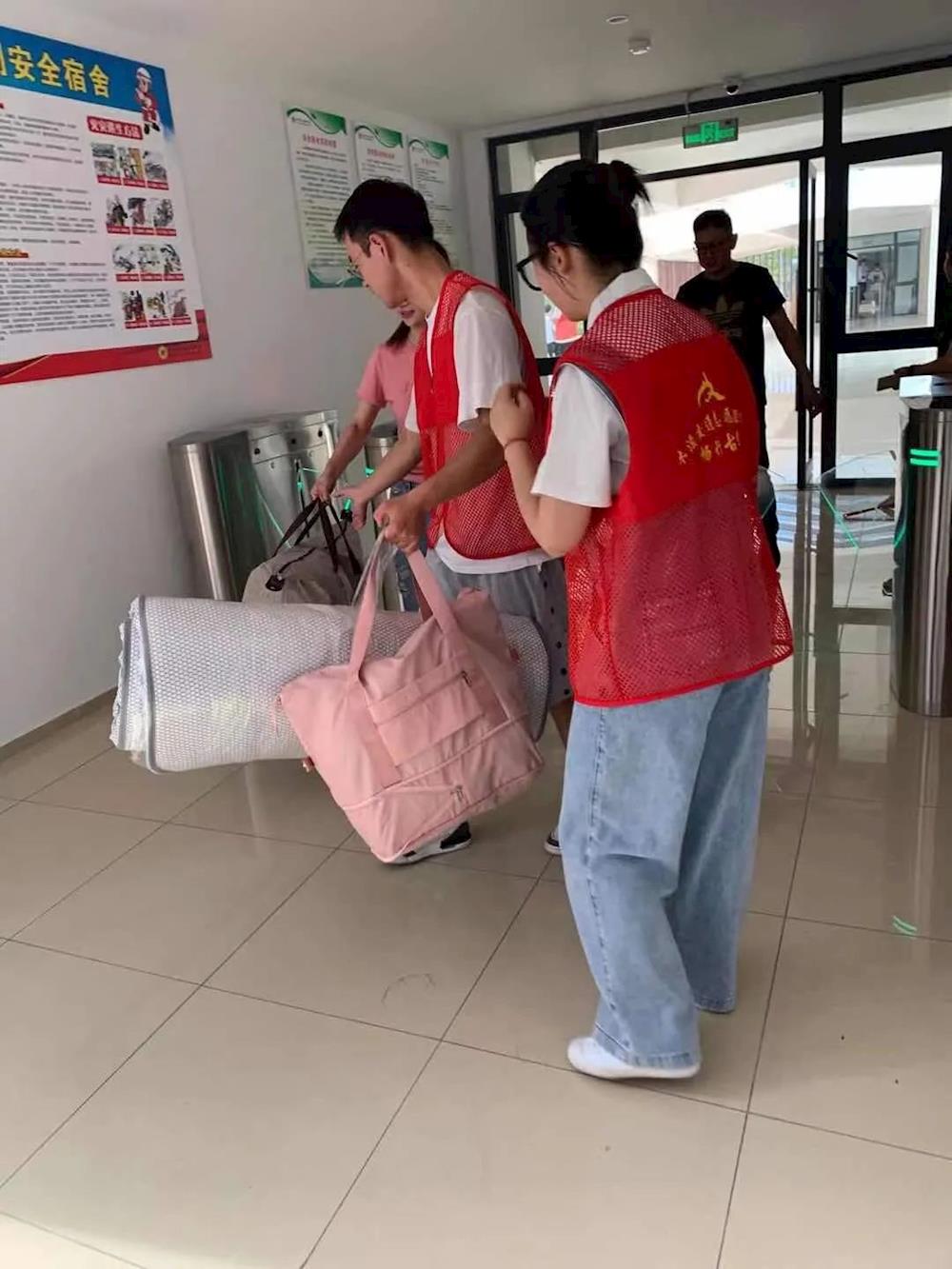 为切实加强疫情防控工作,维护全校师生员工生命安全和身体健康,确保学校2021级新生报到平稳有序,我校2021级新生、2019级学生和2020级学生分别于8月31日上午和下午,分批次进校报到。因为防疫规定,家长不能进入校园,一早,由学校行政、年级部骨干教师、青年教师和学生组成的多人志愿者队伍已经在帮助同学搬运行李了。学校准备了许多轻便的购物推车,减轻了学生搬运行李的压力。